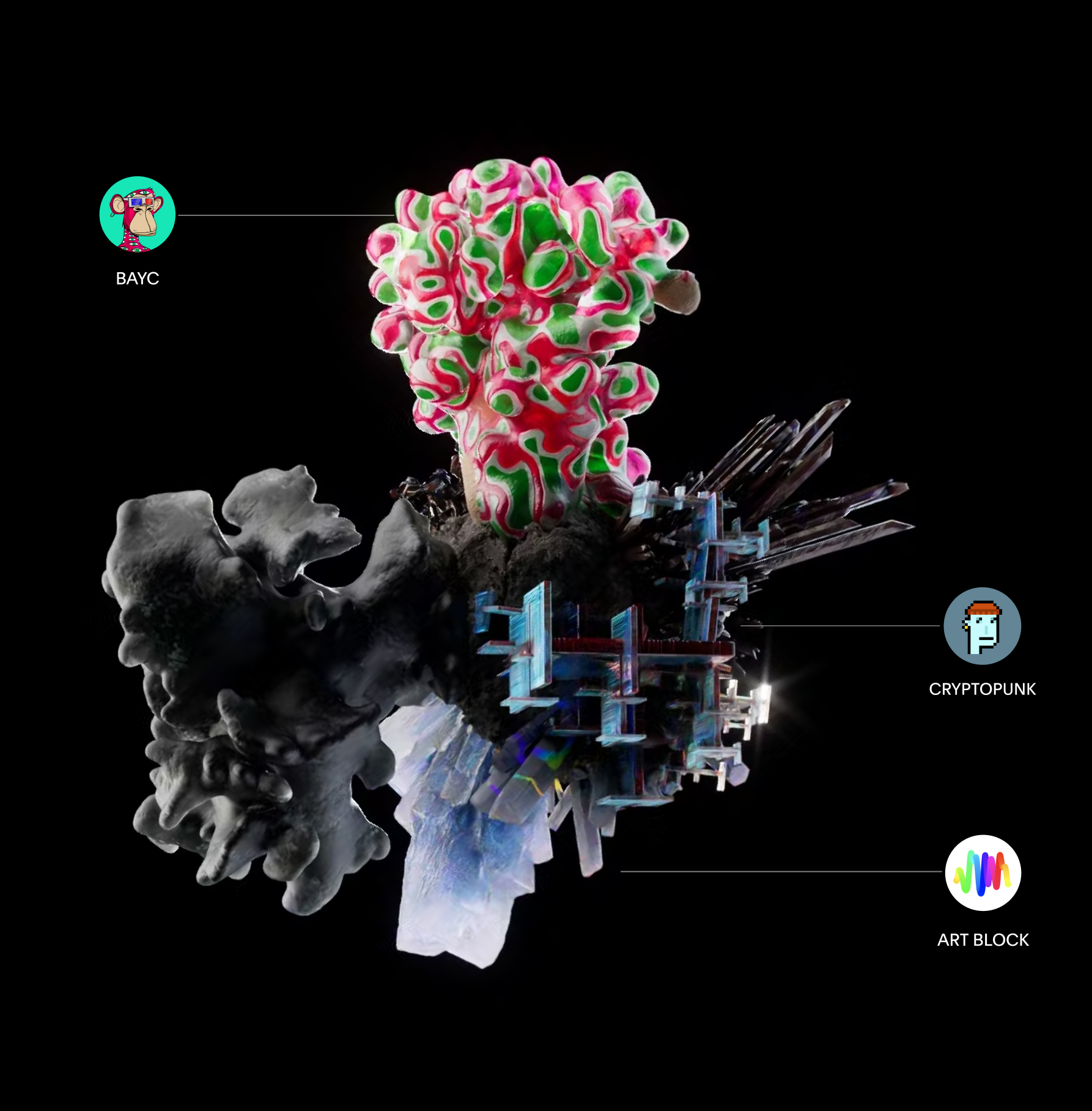 We created a generative NFT collection of crystals, each uniquely shaped by the assets in the collector’s crypto wallet. The collection lived both in the digital realm and the physical world — showcased in iconic museums worldwide.